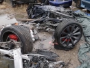Smutný pohled na dvě zničené Tesly, které se staly terčem vandalského útoku v Amsterdamu